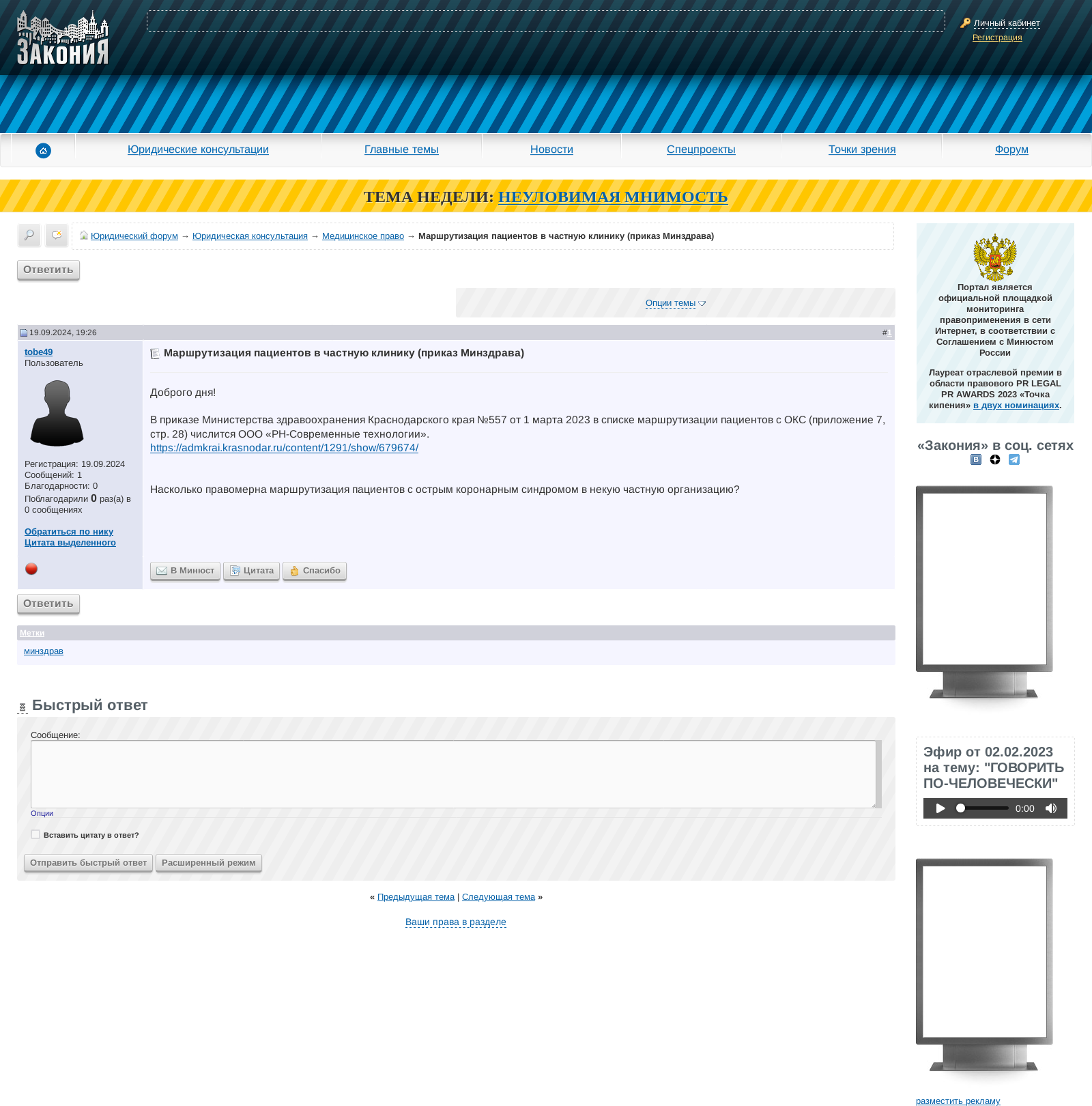 В августе 2024 года мы разогрели обстановку до максимума, давая понять, что вот-вот приступим к информированию людей о проводимых в России испытаниях. Потом выдержали некоторую паузу, а 19 и 20 сентября 2024 года одномоментно разместили сразу на нескольких форумах сообщения, в которых проинформировали общественность о доставке людей бригадами скорой помощи в частную клинику «Мой медицинский центр» (СОГАЗ).